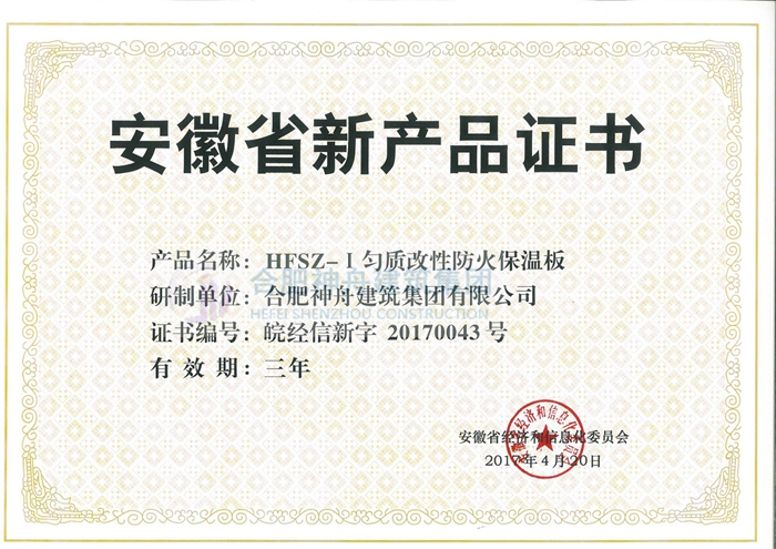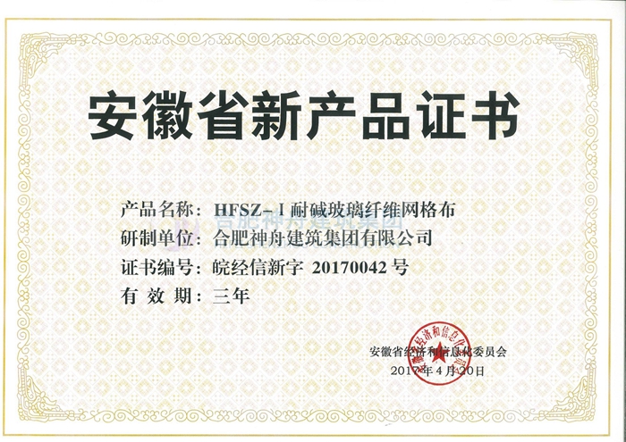 “竣捷”牌勻質改性防火保溫板、耐堿玻璃纖維網格布、真石漆通過安徽省經濟和信息化委員會的評審,榮獲了安徽省新產品榮譽證書